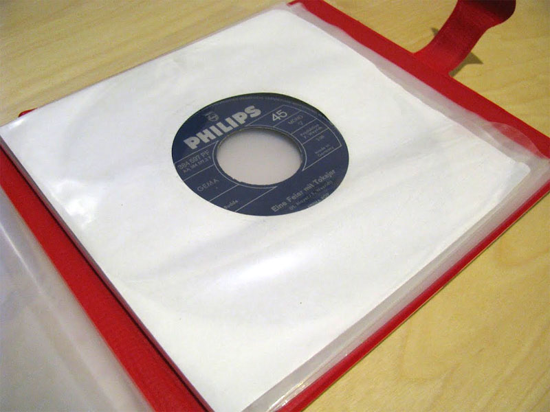 白地に楽譜と各種楽器がプリントされた7インチ用レコードケースです(1960年代頃製)。7インチレコードをジャケットごとたっぷり24枚収納できます。外側のナイロンケース及びケース内の収納ビニールともにコンディション良好です(ビニールの一部に折れジワが2箇所有)。見開き部分には紙のインデックスシートを挟むことができます(オリジナルのものがそのまま入っています)。その他の写真は下記「other links」よりご確認ください。基本1点ものとなりますので、再入荷リクエストをいただいた場合は同タイプ(柄)のものが入荷した際にお知らせいたします。